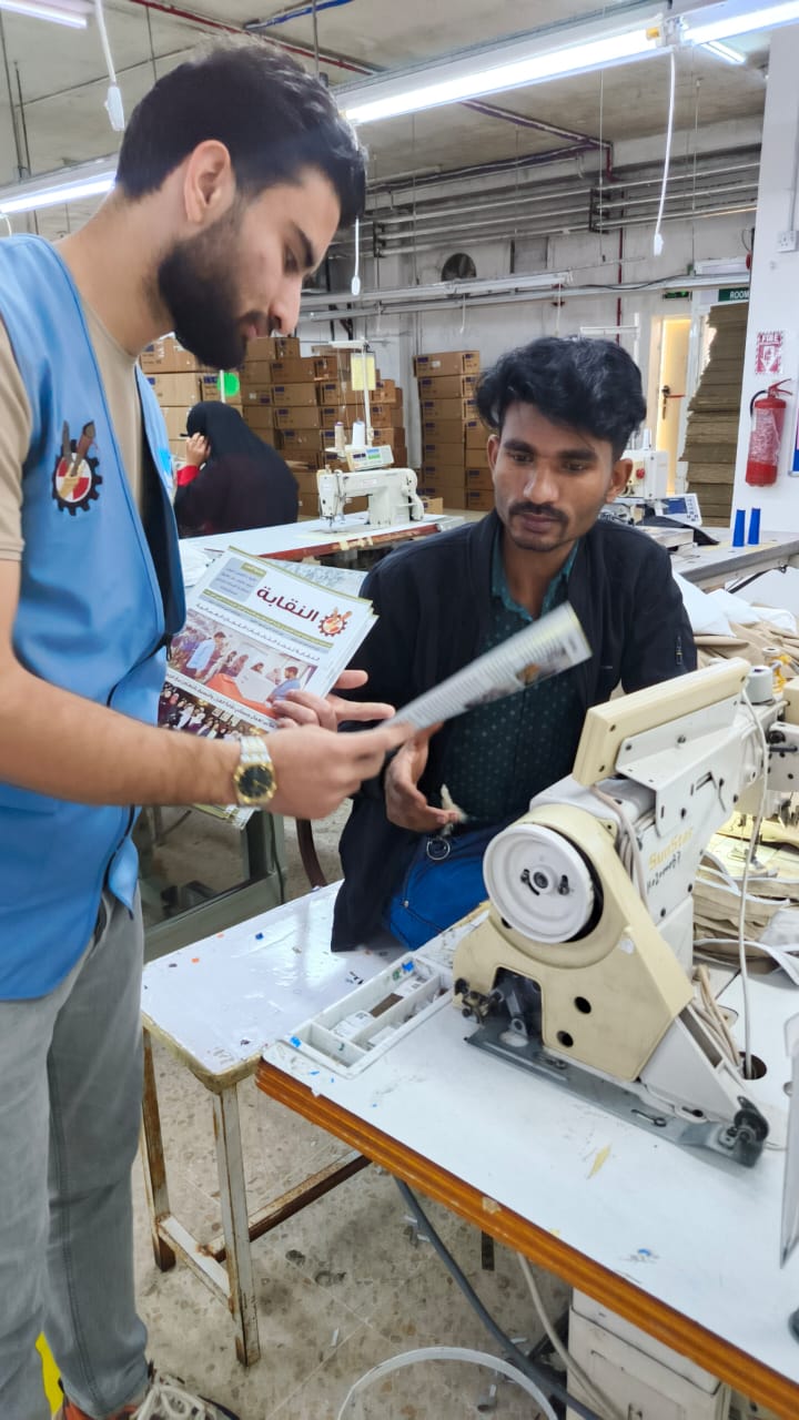 واصلت النقابة العامة للعاملين في صناعة الغزل والنسيج والألبسة تنفيذ خطتها الميدانية لتعزيز التواصل مع العمال والعاملات في مختلف المناطق الصناعية بالمملكة، من خلال عقد الاجتماعات واللقاءات التعريفية، والإشراف على الانتخابات العمالية، وتنفيذ برامج التدريب والتوعية، بما يسهم في ترسيخ مبادئ العمل النقابي والدفاع عن الحقوق العمالية.