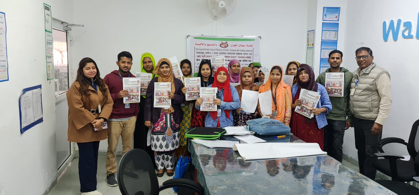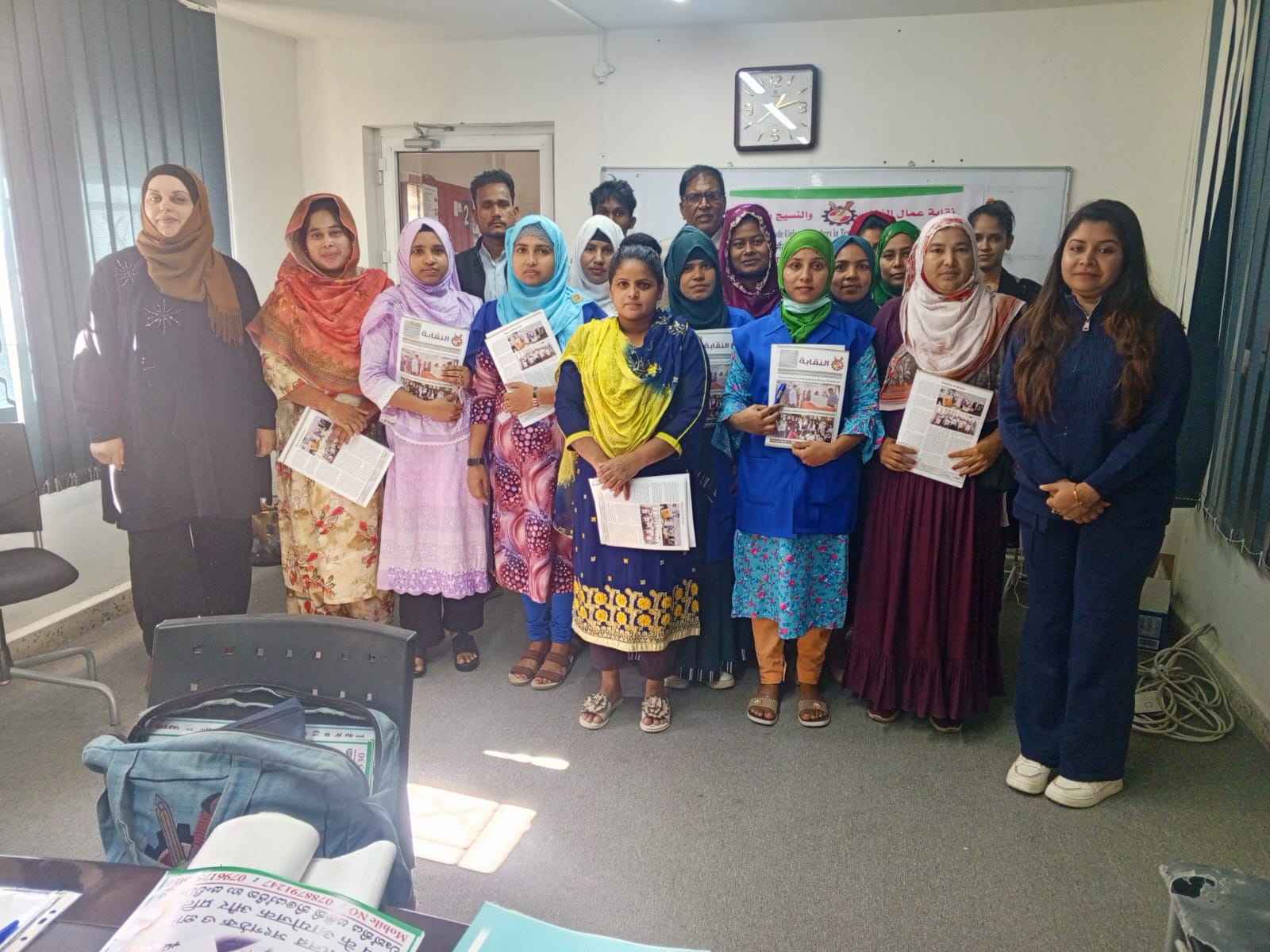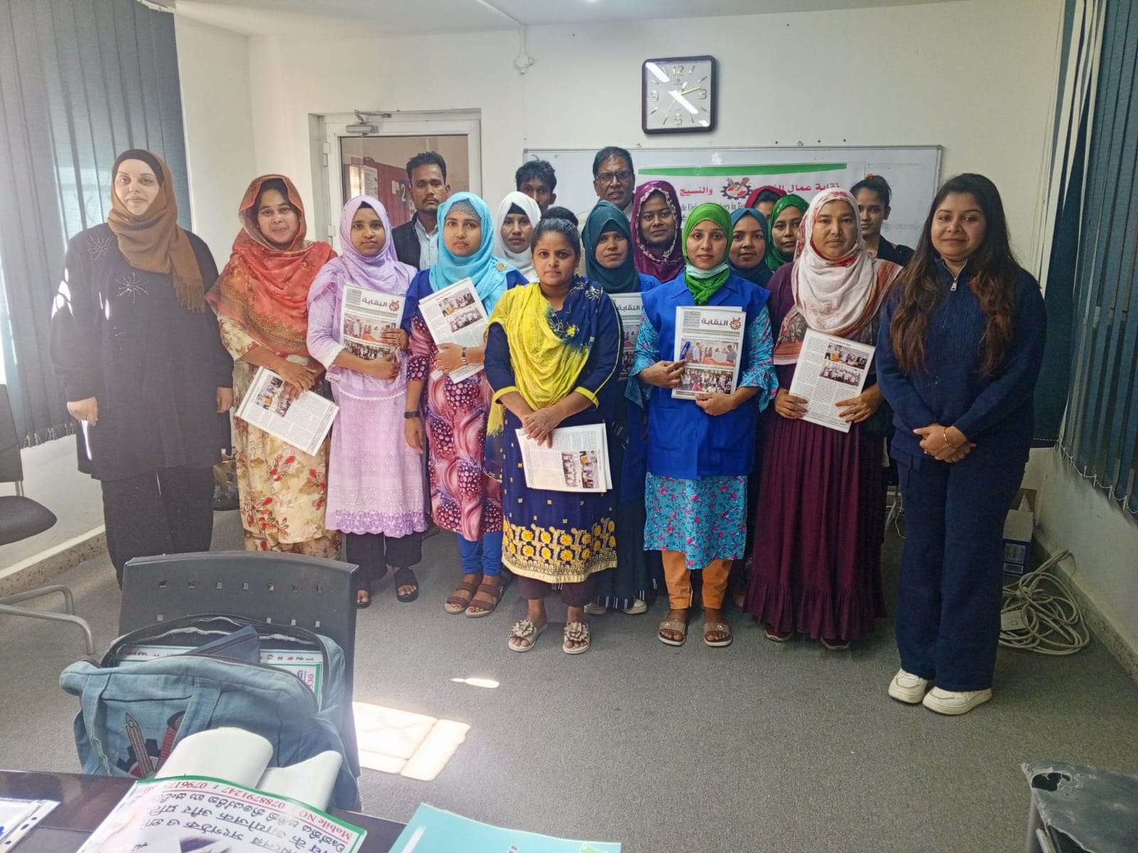 وفي ذات المدينة، نفذت الزميلة روان الغزاوي زيارة إلى شركة جالكسي، شملت تدريب 25 عاملة جديدة من الجنسية البنغالية، جرى خلالها شرح بنود الاتفاقية الجماعية، ودور النقابة في حماية الحقوق، وآليات التواصل عبر المنصات الإلكترونية، وتم تنسيب جميع العاملات وتوزيع العدد الجديد من مجلة النقابة عليهن.