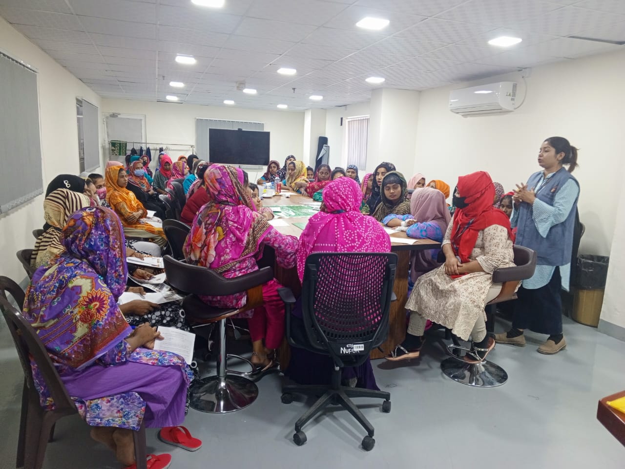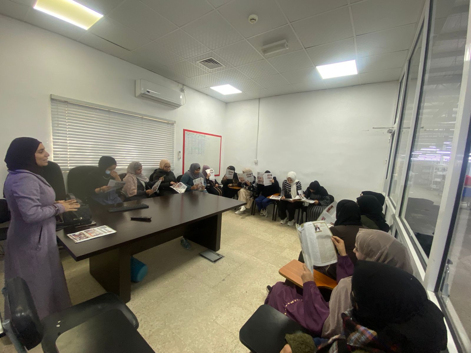 كما عُقدت الزميلة اجتماع في مصنع الجنوبية مع (70) عاملًا وعاملة جدد من الجنسيات الأردنية والبنغالية والهندية، جرى خلاله التعريف بدور النقابة وإنجازاتها والامتيازات التي تقدمها، بما في ذلك الزيادة السنوية البالغة (5) دنانير، والعقد الموحد والاتفاقية الجماعية.