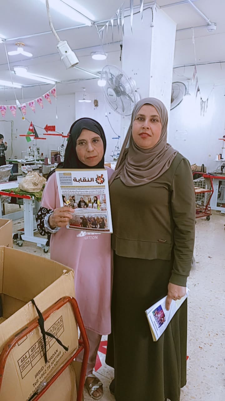 وفي محافظة إربد، واصلت ممثلة النقابة في الشمال الزميلة أمل منسي نشاطها الميداني من خلال زيارة مصنع سناء، حيث التقت بالعاملات خلال أوقات الاستراحة، وقدمت شرحاً حول دور النقابة والخدمات التي توفرها، بما في ذلك الخصومات التي يحصل عليها الأعضاء من خلال بطاقة العضوية، إلى جانب توزيع مجلات النقابة على العاملات.