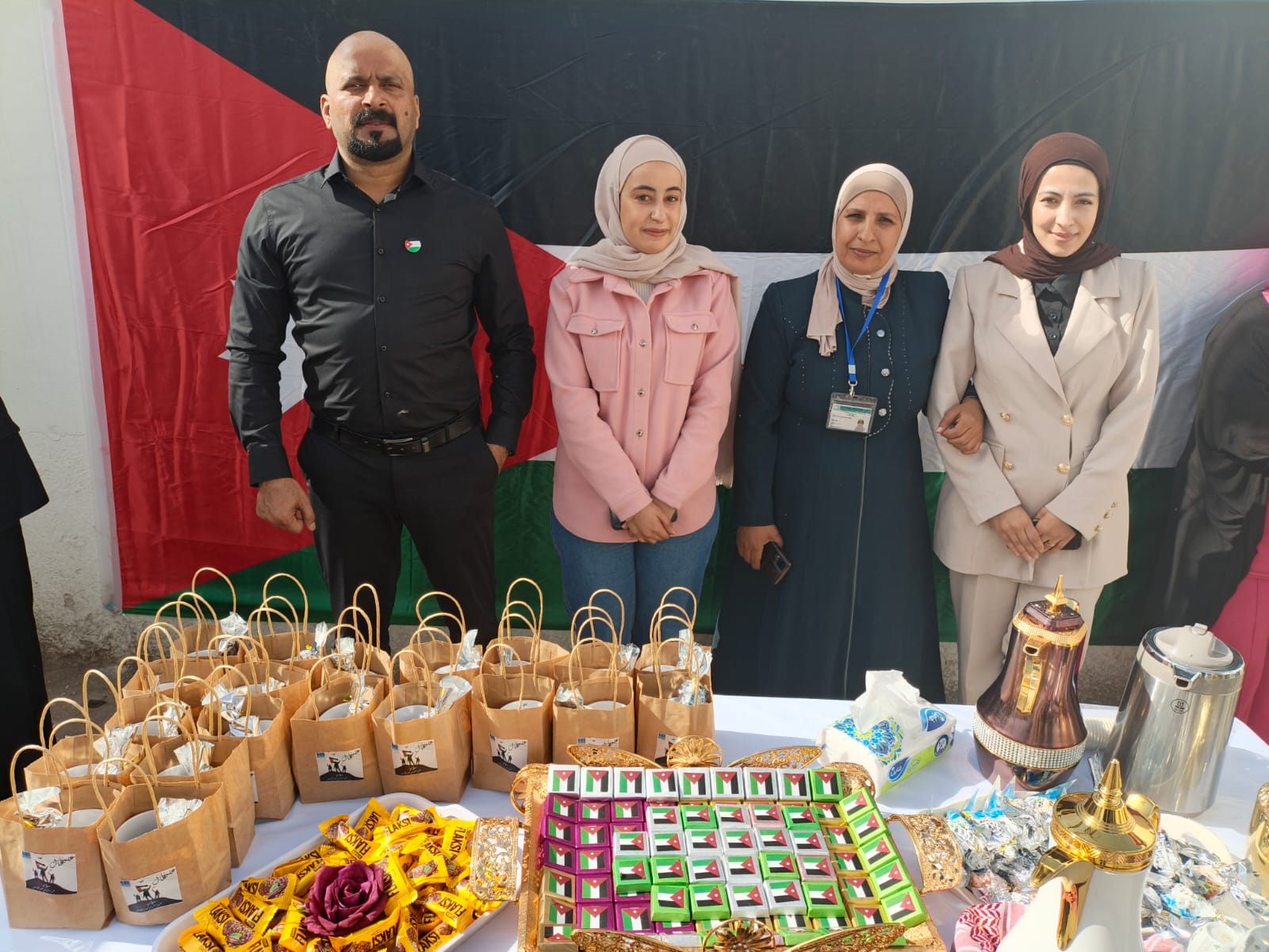كما شارك الزملاء في مناطق مختلفة بفعاليات واحتفالات يوم العلم إذ زينت الزميلات أحلام الطيراوي وروان الغزاوي مكتب النقابة في مدينة الحسن الصناعية بالعلم الاردني.