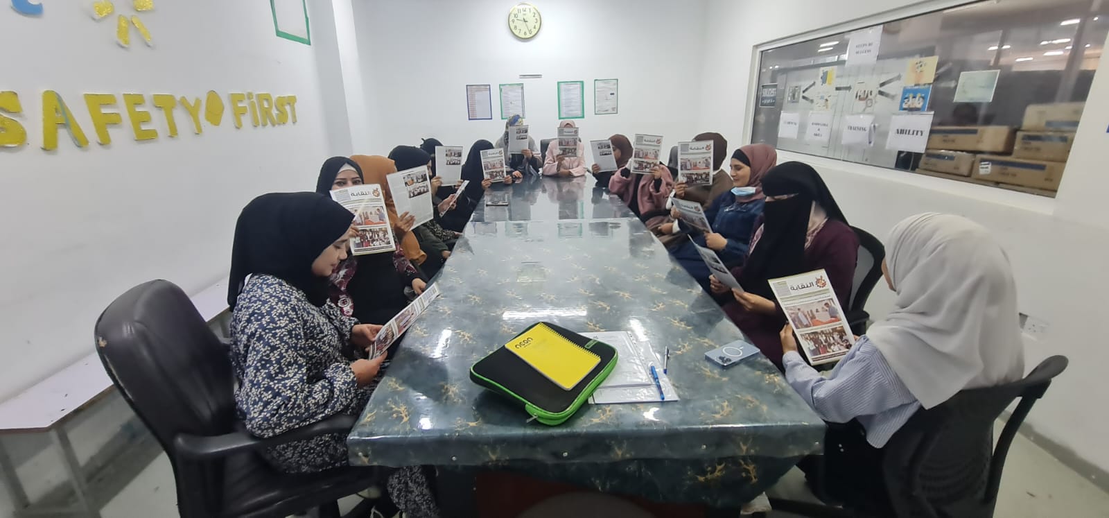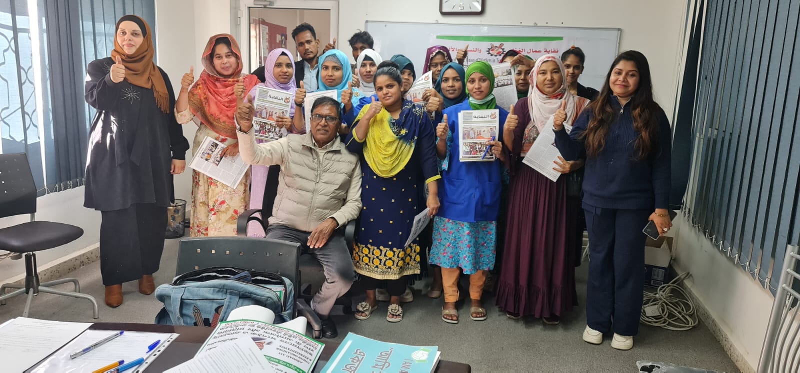 وفي ذات المدينة، نفذت الزميلة روان الغزاوي زيارة إلى شركة جالكسي، شملت تدريب 25 عاملة جديدة من الجنسية البنغالية، جرى خلالها شرح بنود الاتفاقية الجماعية، ودور النقابة في حماية الحقوق، وآليات التواصل عبر المنصات الإلكترونية، وتم تنسيب جميع العاملات وتوزيع العدد الجديد من مجلة النقابة عليهن.