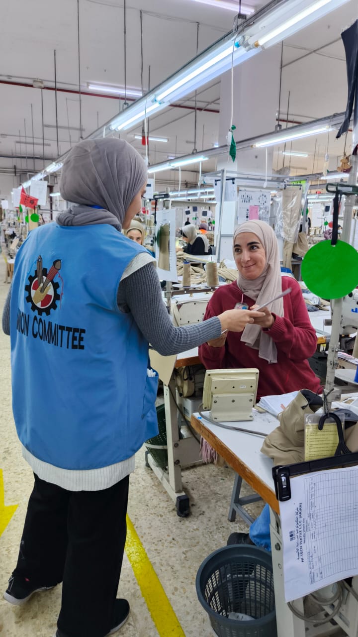 ففي مدينة الحسن الصناعية/ إربد أشرفت ممثلتا النقابة في مدينة الحسن الصناعية، الزميلتان أحلام الطيراوي وروان الغزاوي، على إجراء انتخابات اللجنة العمالية في شركة حيفا، بمشاركة 327 عاملاً وعاملة من الجنسيات الأردنية والبنغالية والهندية، حيث أسفرت الانتخابات عن فوز 7 أعضاء يمثلون الجنسيات الثلاث في الشركة، في خطوة تعزز التمثيل العمالي داخل مواقع العمل.
