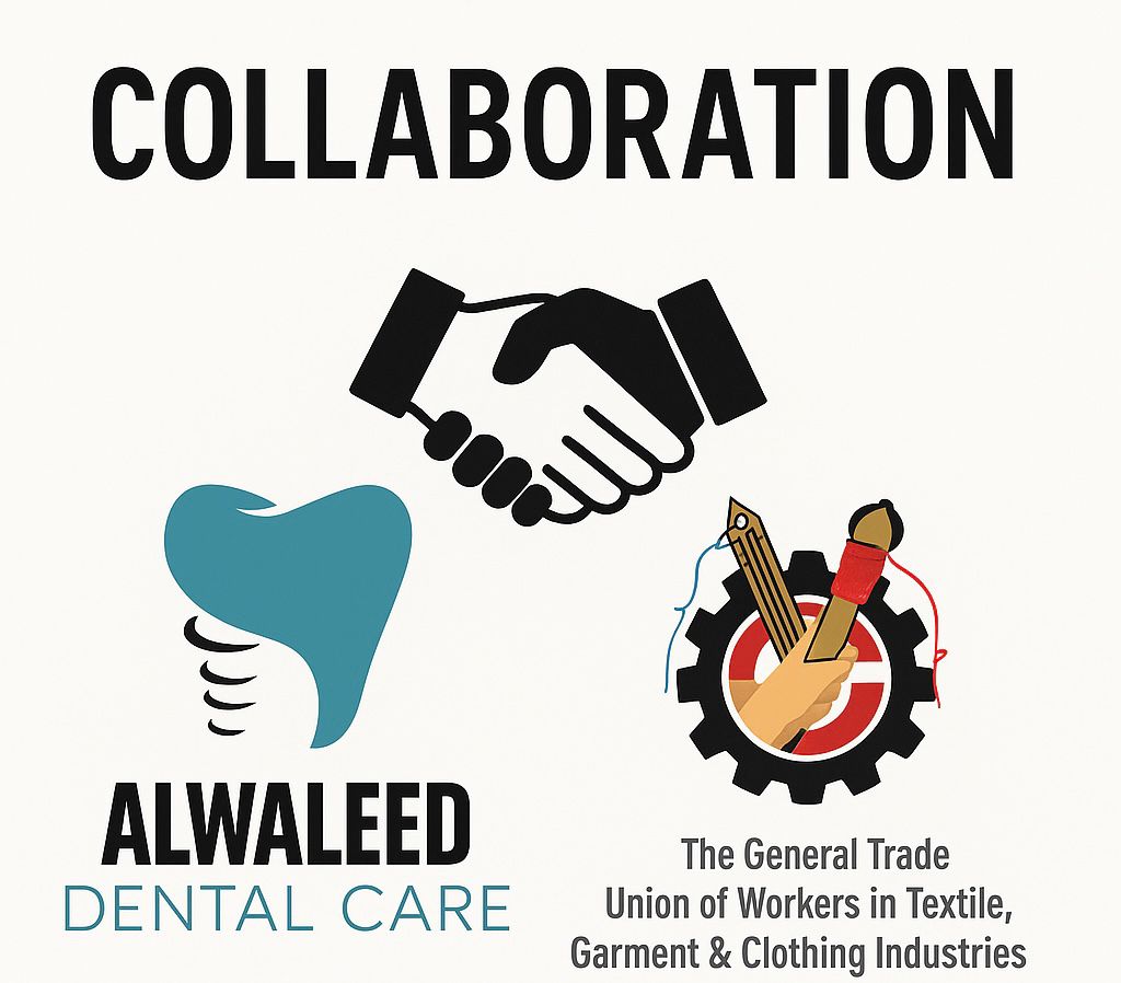 الإعلان عن اتفاق جديد مع عيادات الوليد لطب وجراحة الفم والأسنان يمنح العمال المنتسبين للنقابة خصماً بنسبة 50% على الخدمات والعلاجات التجميلية التي تقدمها العيادات في فرعيها بمحافظتي إربد وعجلون.