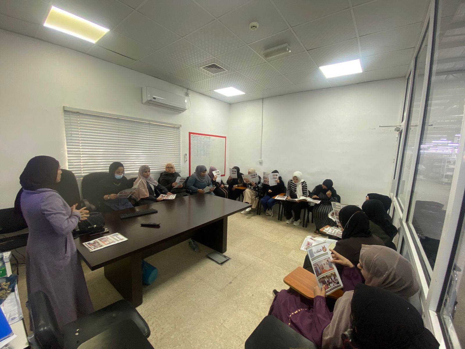 كما عُقدت الزميلة اجتماع في مصنع الجنوبية مع (70) عاملًا وعاملة جدد من الجنسيات الأردنية والبنغالية والهندية، جرى خلاله التعريف بدور النقابة وإنجازاتها والامتيازات التي تقدمها، بما في ذلك الزيادة السنوية البالغة (5) دنانير، والعقد الموحد والاتفاقية الجماعية.